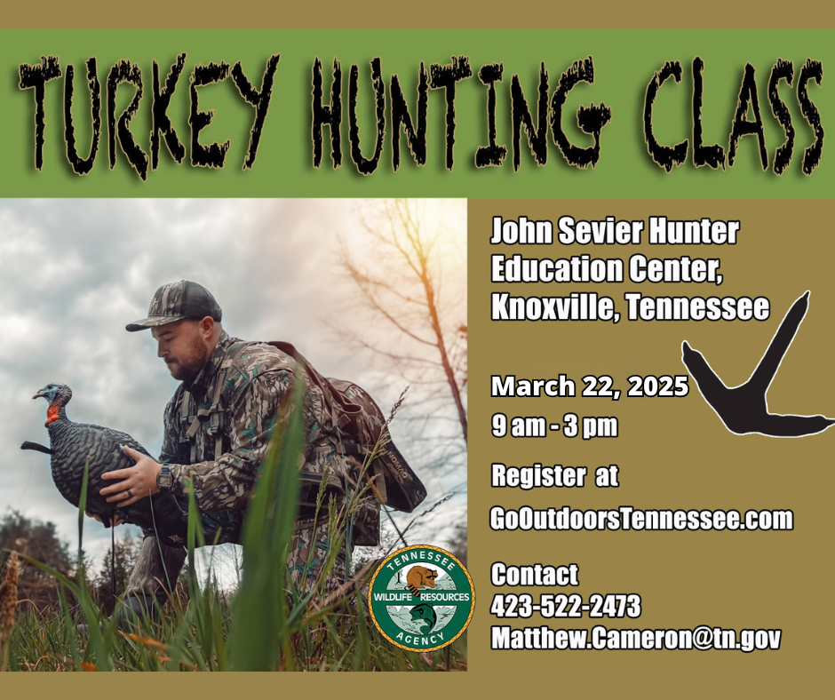 KNOXVILLE, Tenn.---TWRA is offering an Introduction to Turkey Hunting Class at the John Sevier Hunter Education Center in Knoxville on Saturday, March 22, 2025, from 9 am to 3 pm with a one-hour break for lunch.